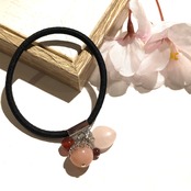 【h614d】天然石ヘアゴム ローズクォーツハート付き