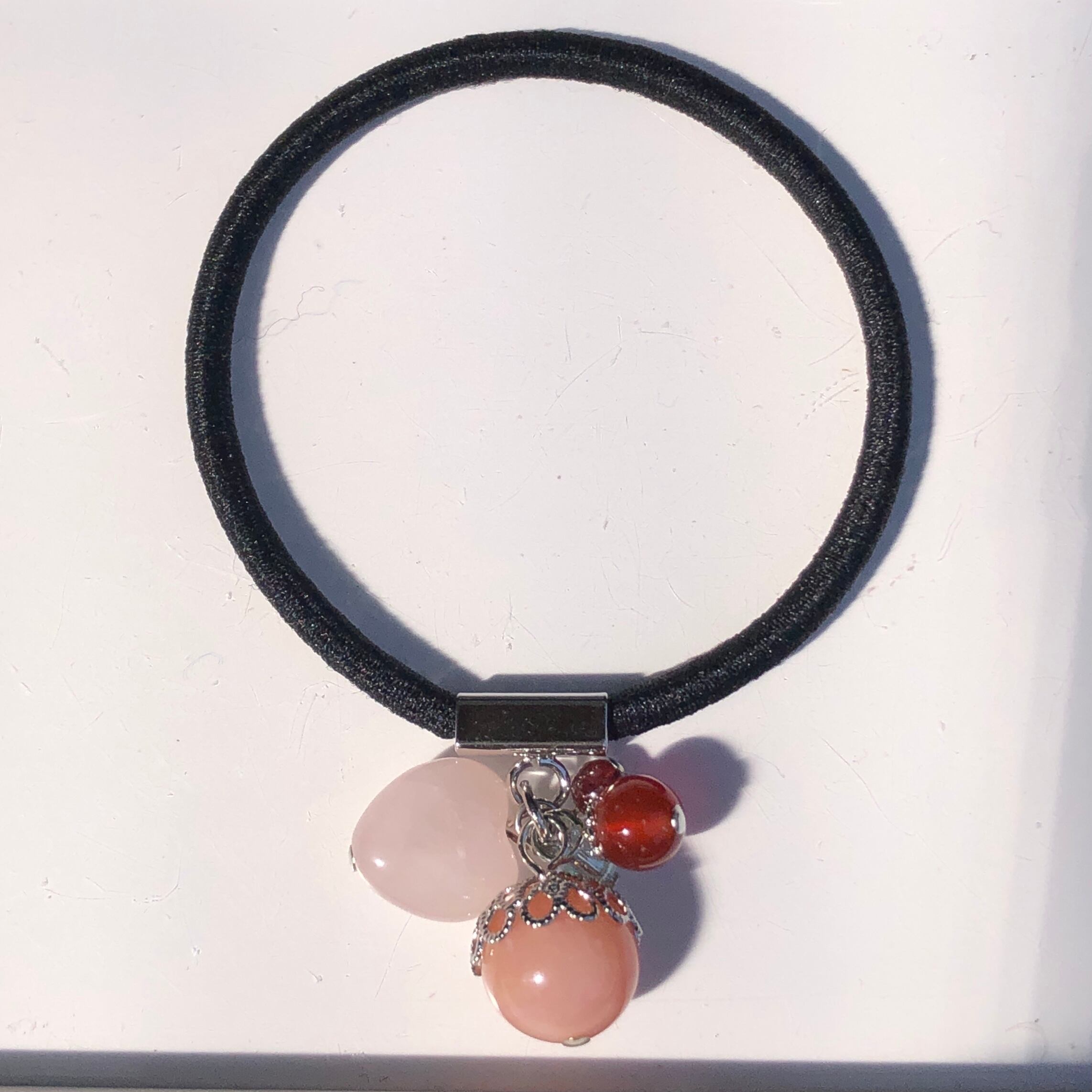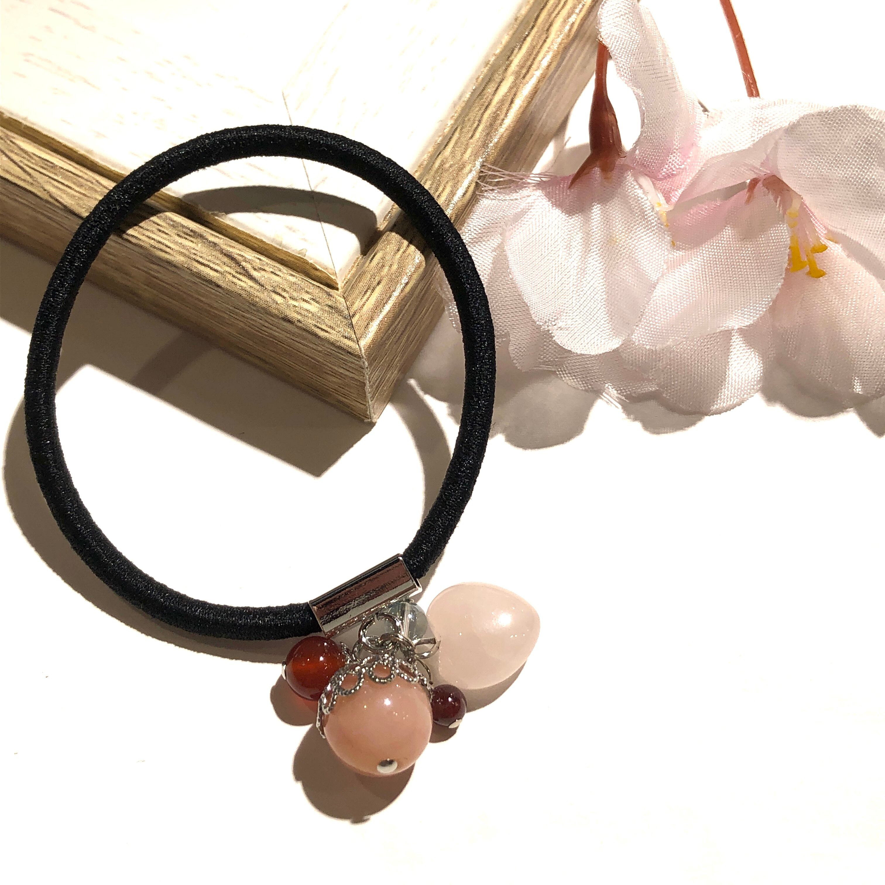 ローズクォーツのハートが付いた可愛い天然石ヘアゴムです♡