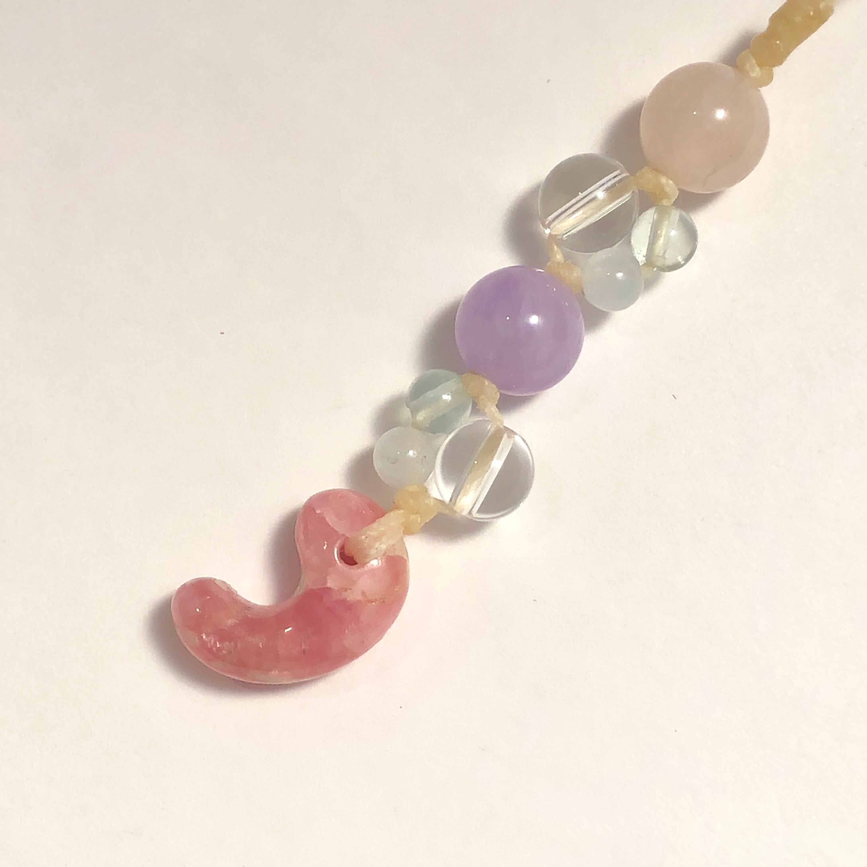 ■使用している石 ロードクロサイト(勾玉)、水晶、モルガナイト、グリーンフローライト、アクアマリン、アメジスト