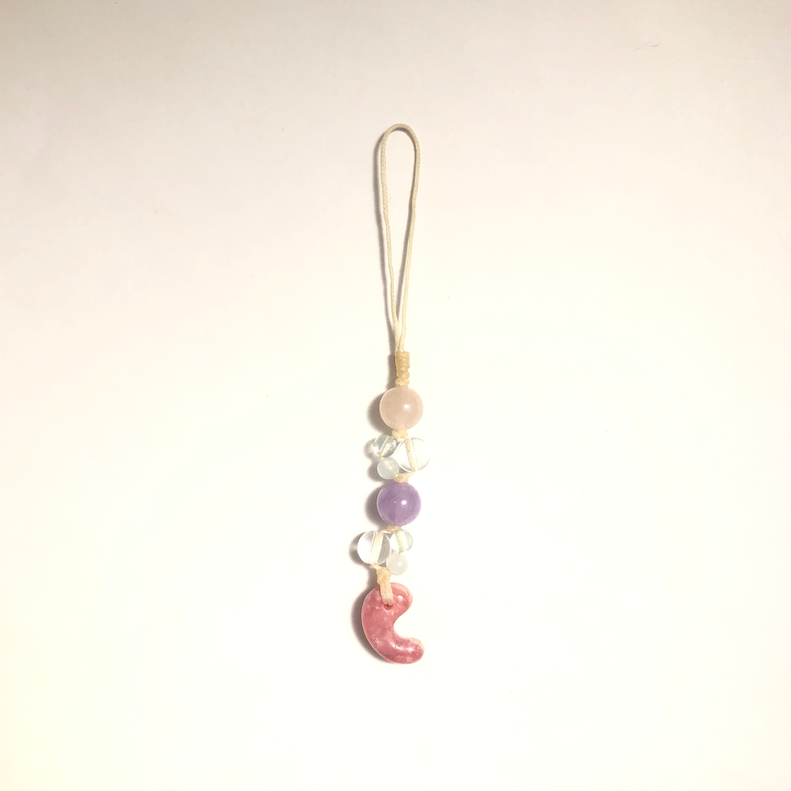 ロードクロサイトの勾玉を使った天然石ストラップです。