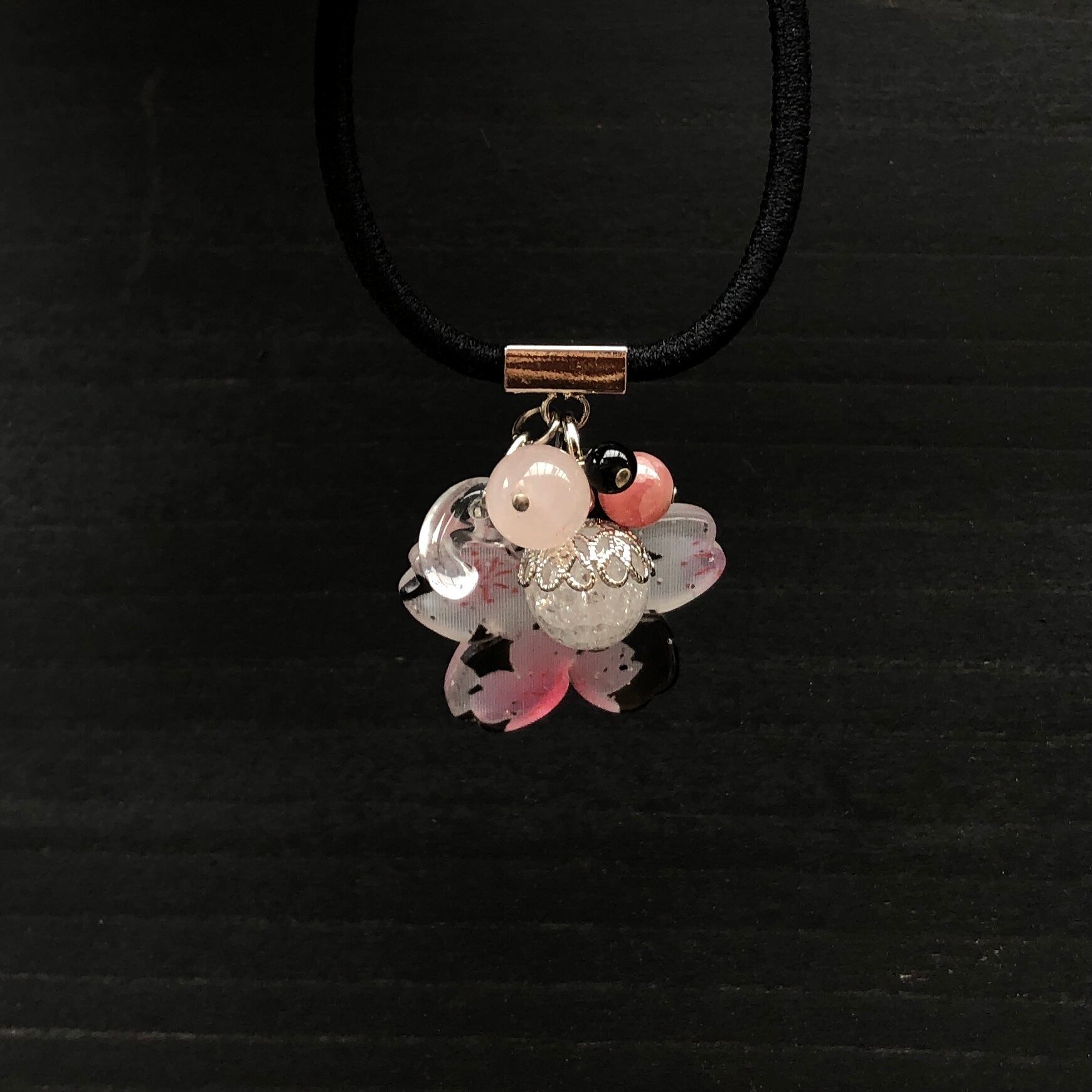 【h623d】天然石ヘアゴム 桜×勾玉
