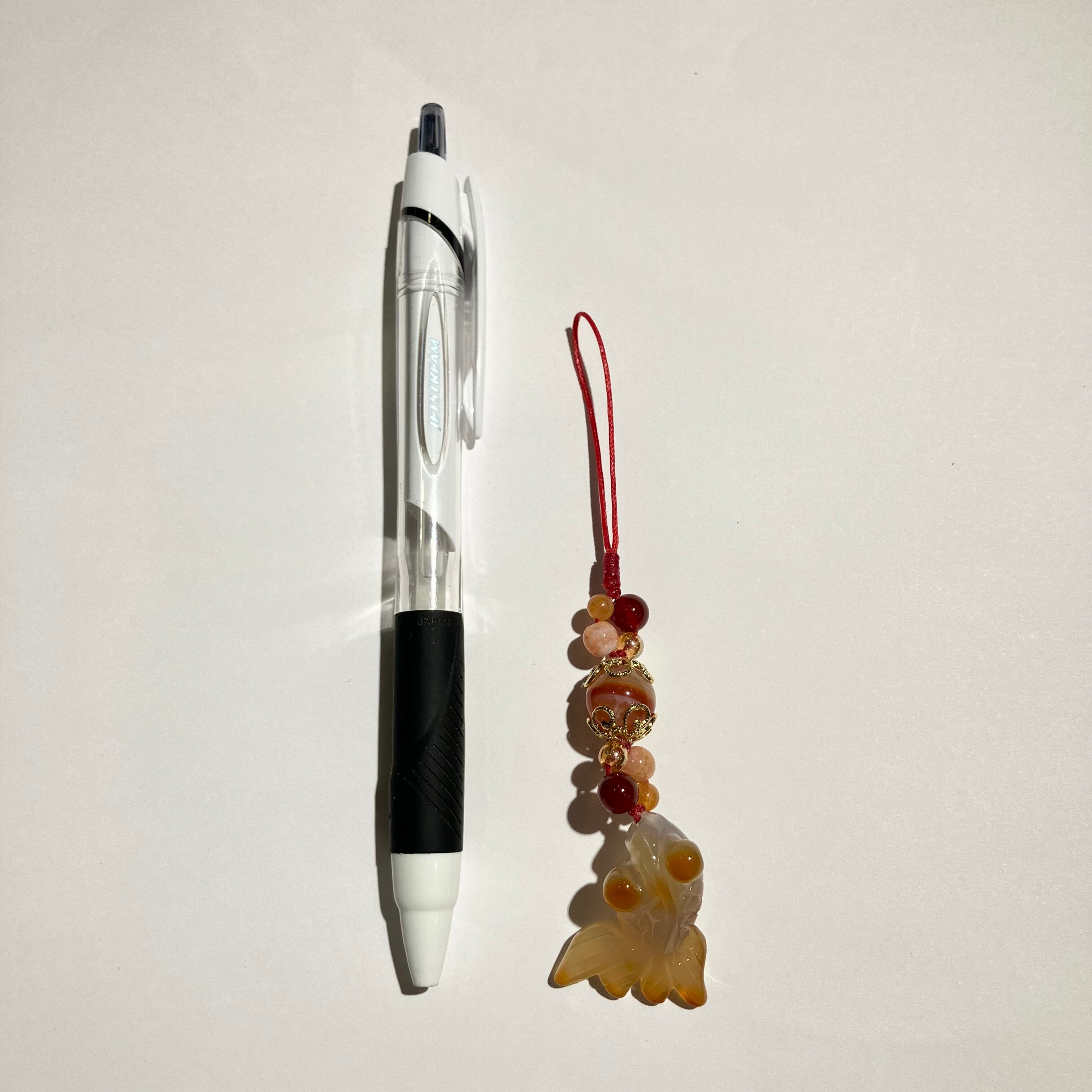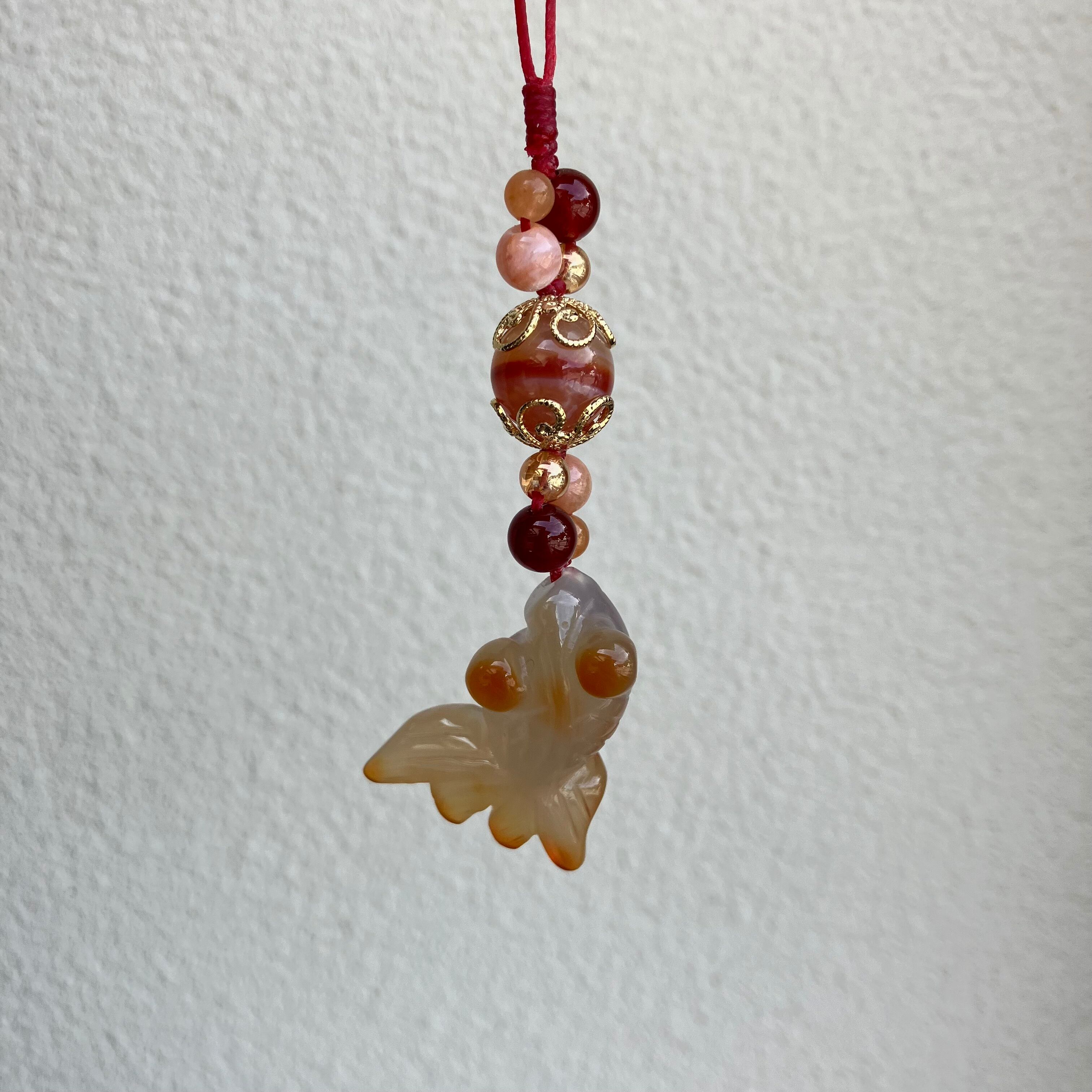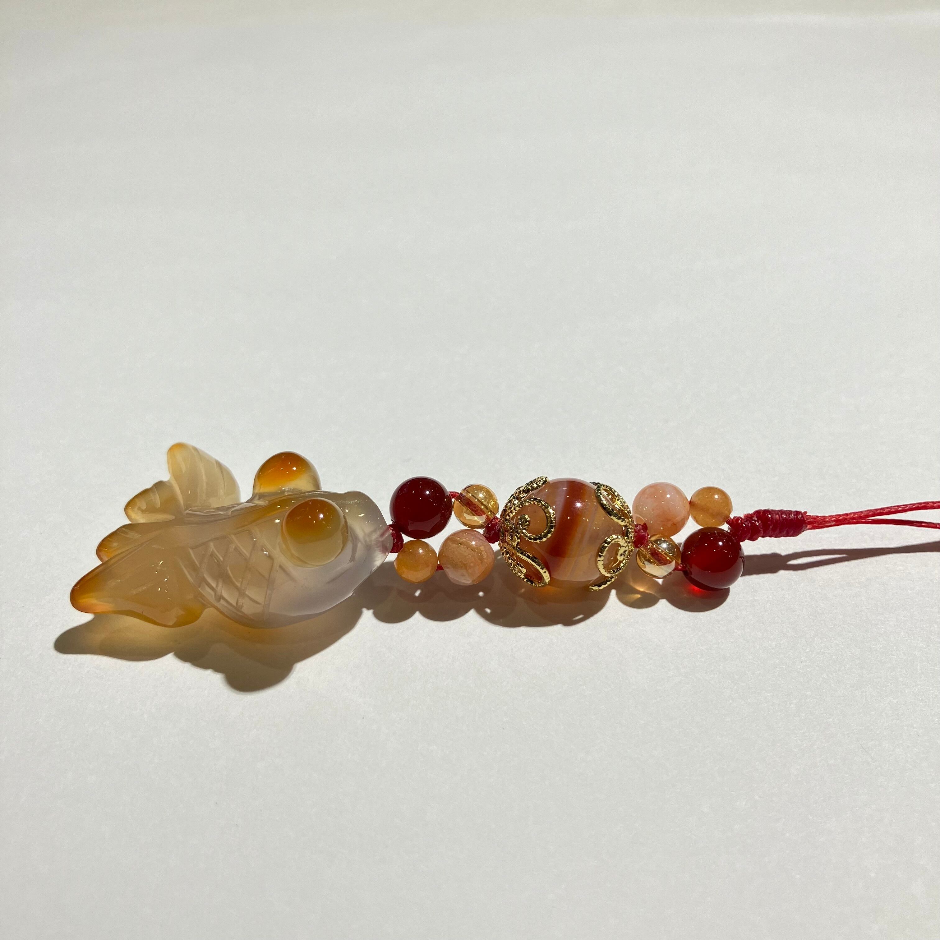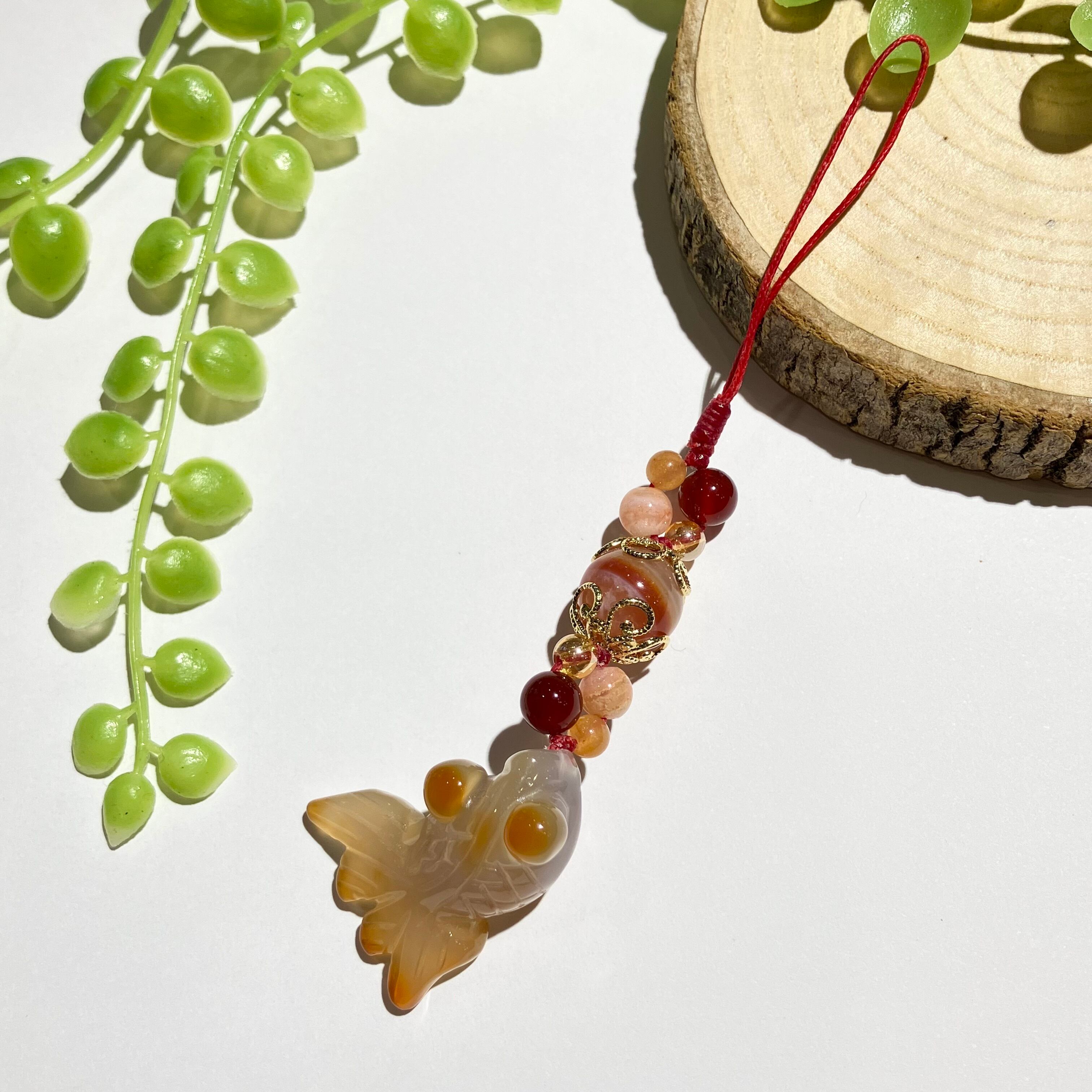 【h655d】天然石金魚ストラップ めのう[長寿・健康]