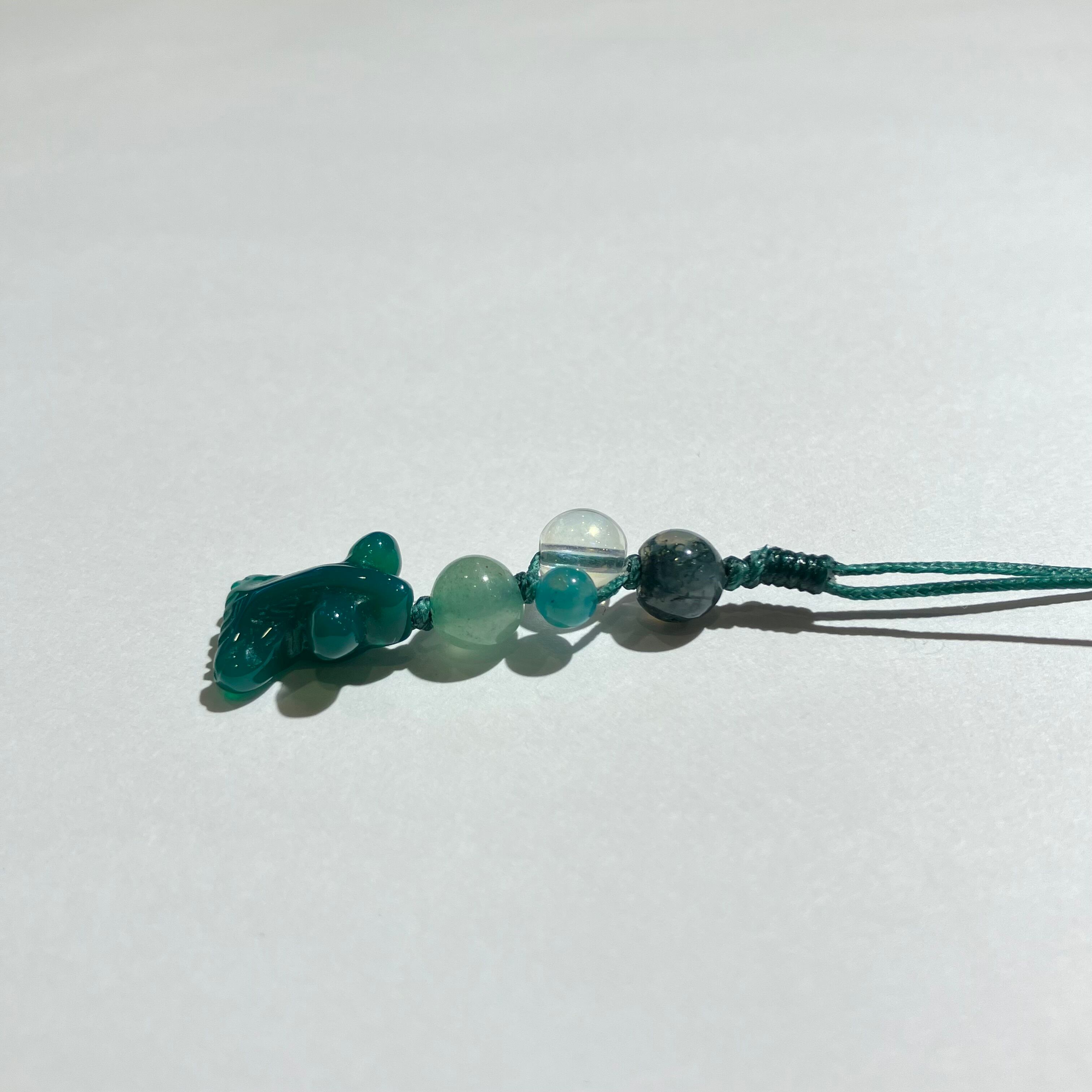 ■使用している石 青めのう(金魚)、モスアゲート、ホワイトオーロラクォーツ、アマゾナイト、アベンチュリン