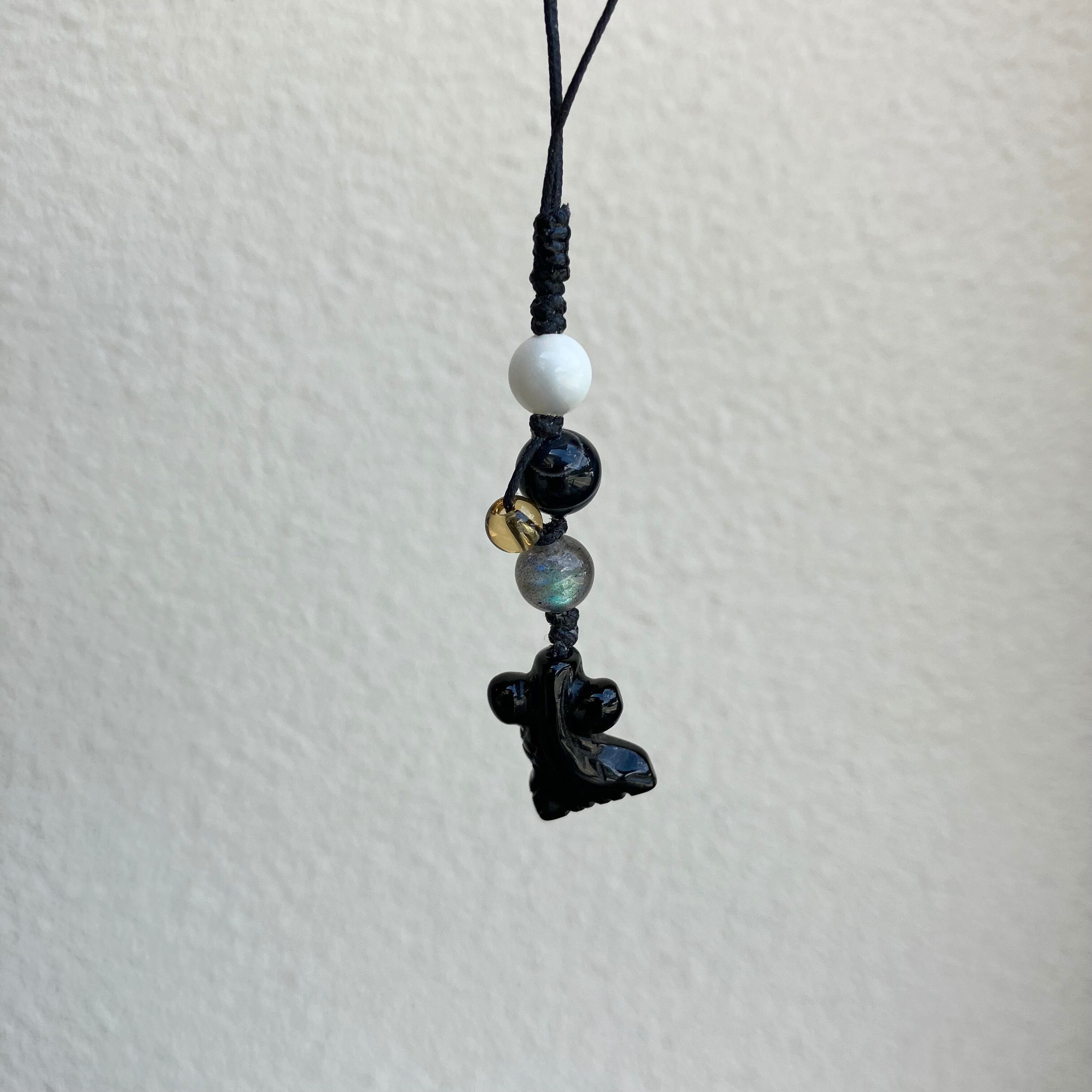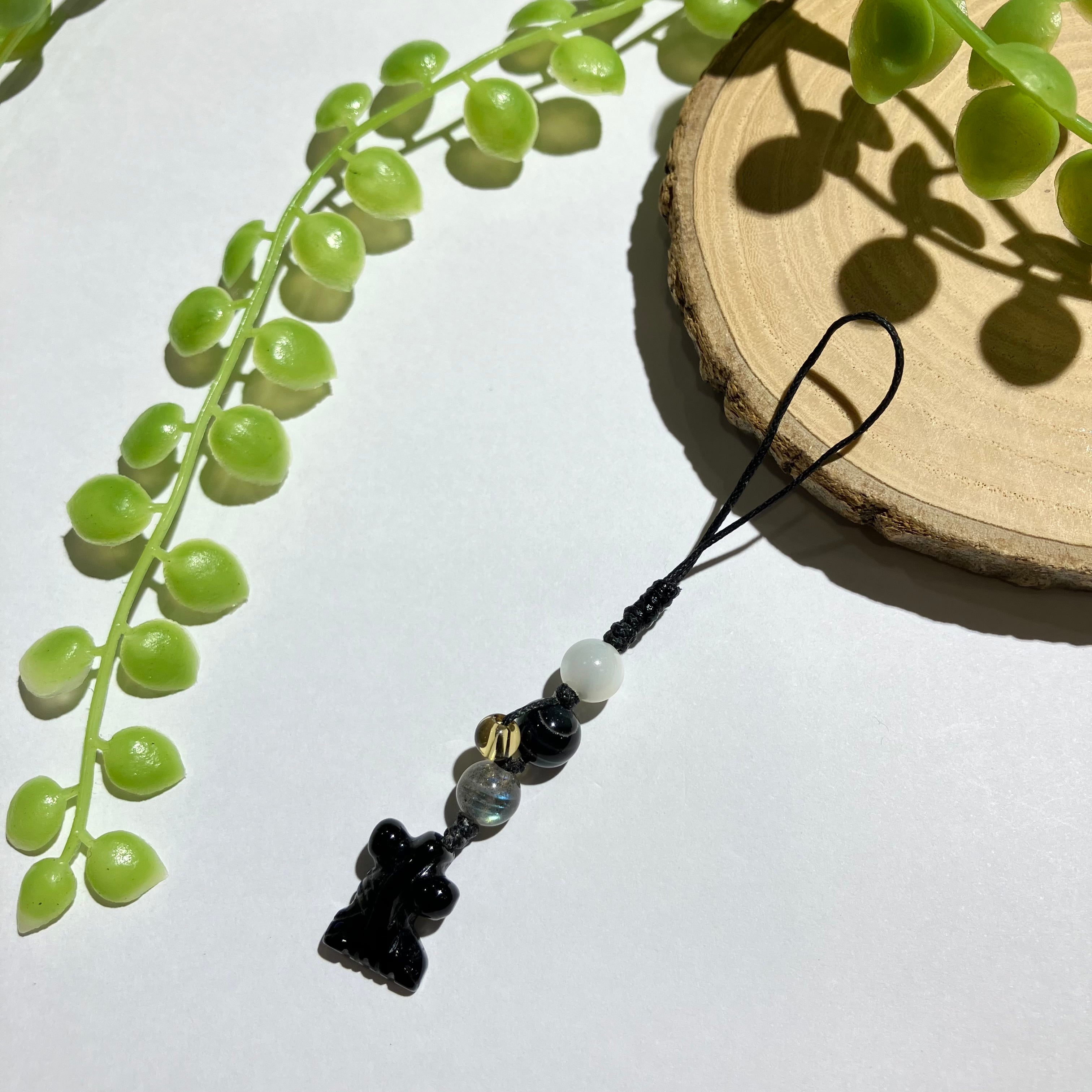 【h662d】天然石ミニ金魚ストラップ オニキス[潜在能力開花・厄除け]