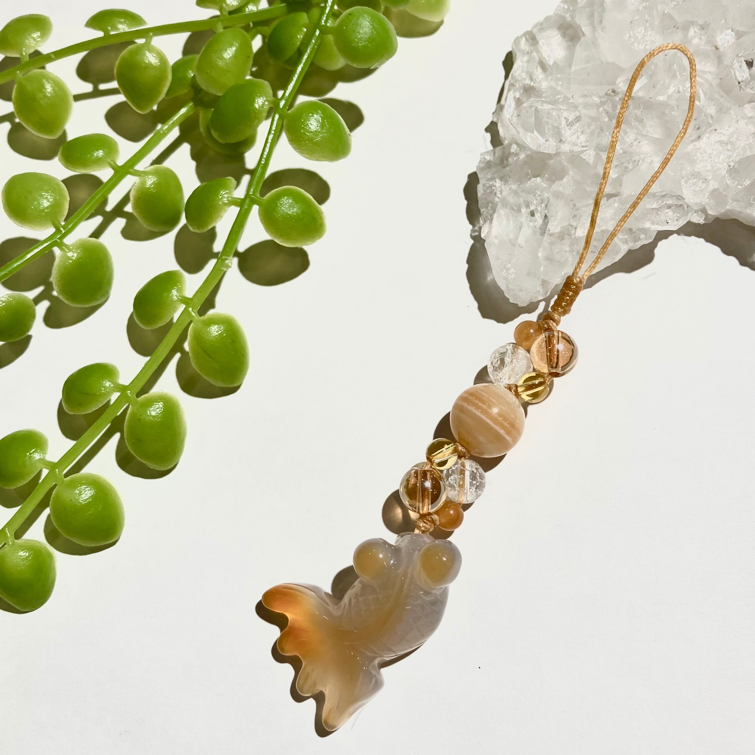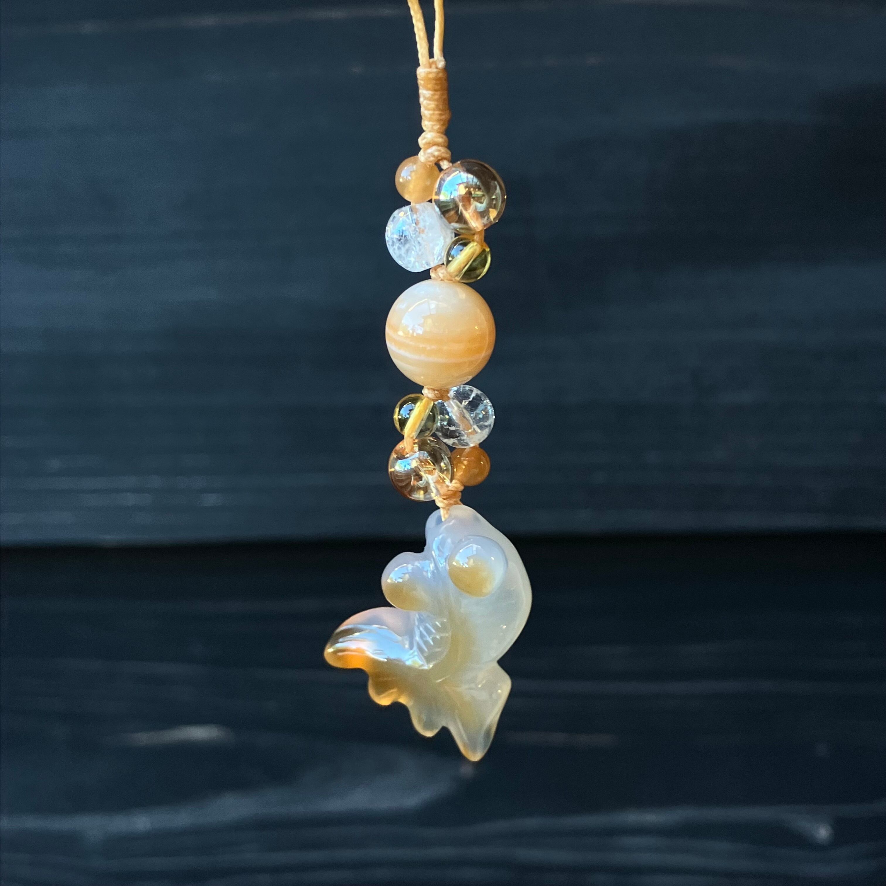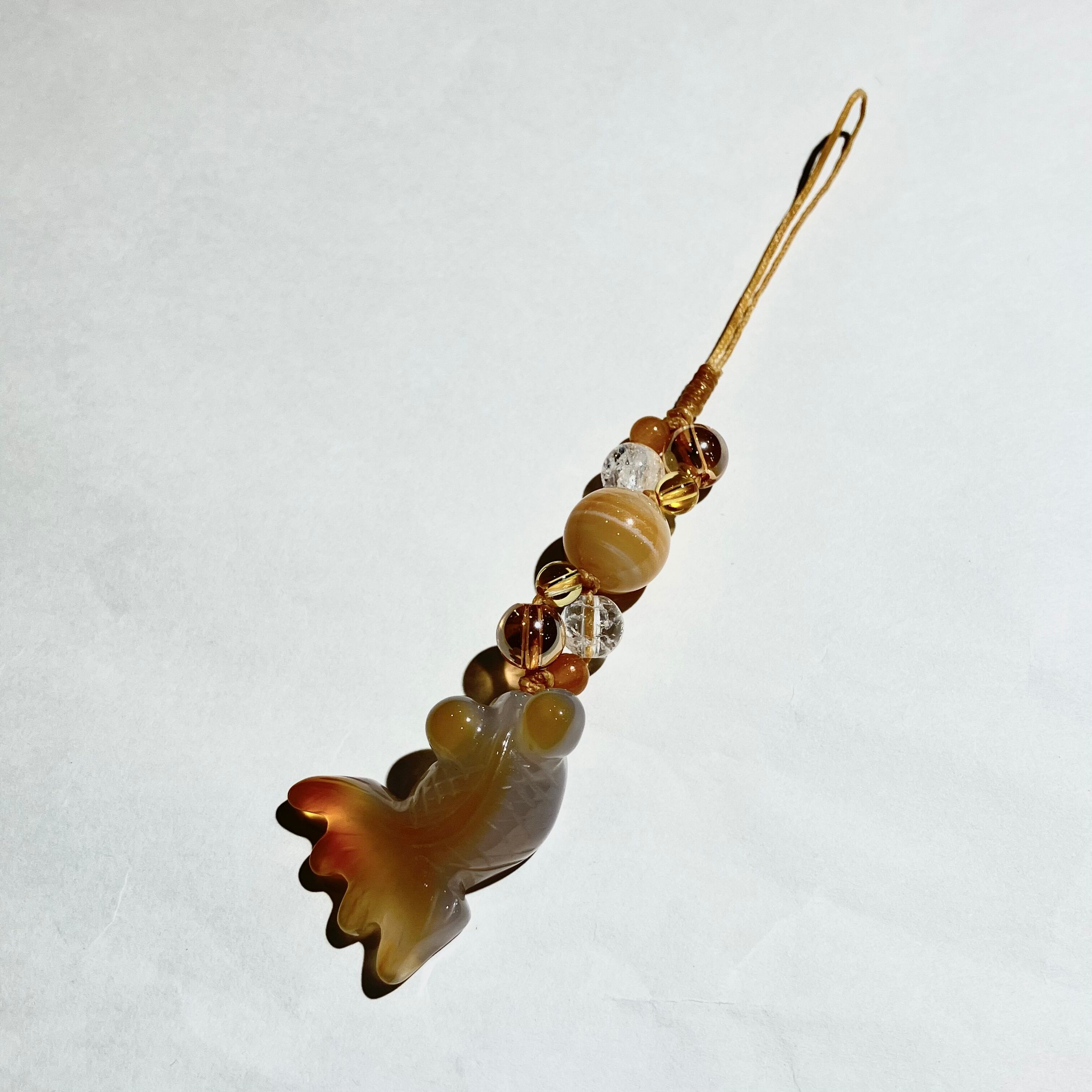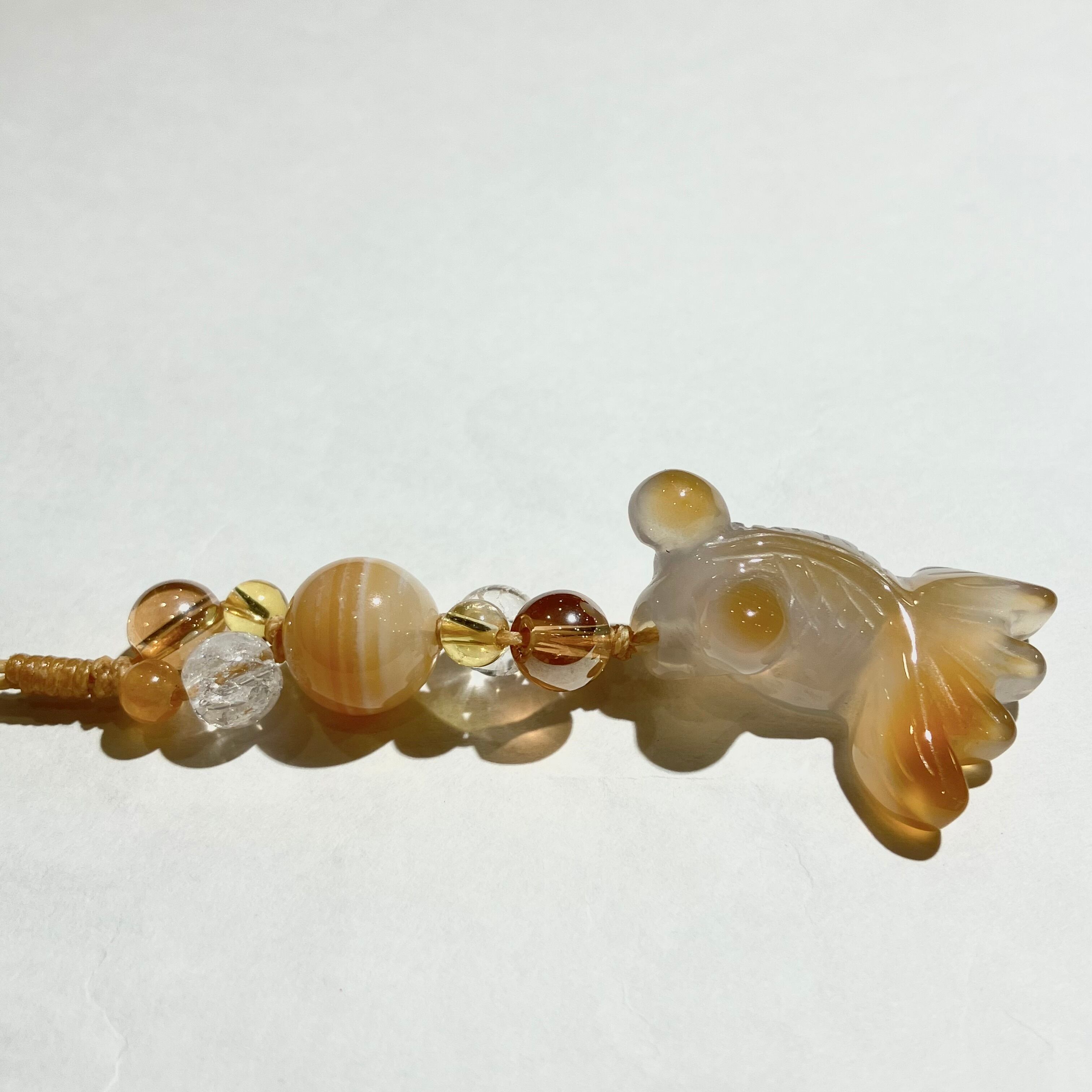 【h671d】天然石金魚ストラップ めのう[長寿・健康]