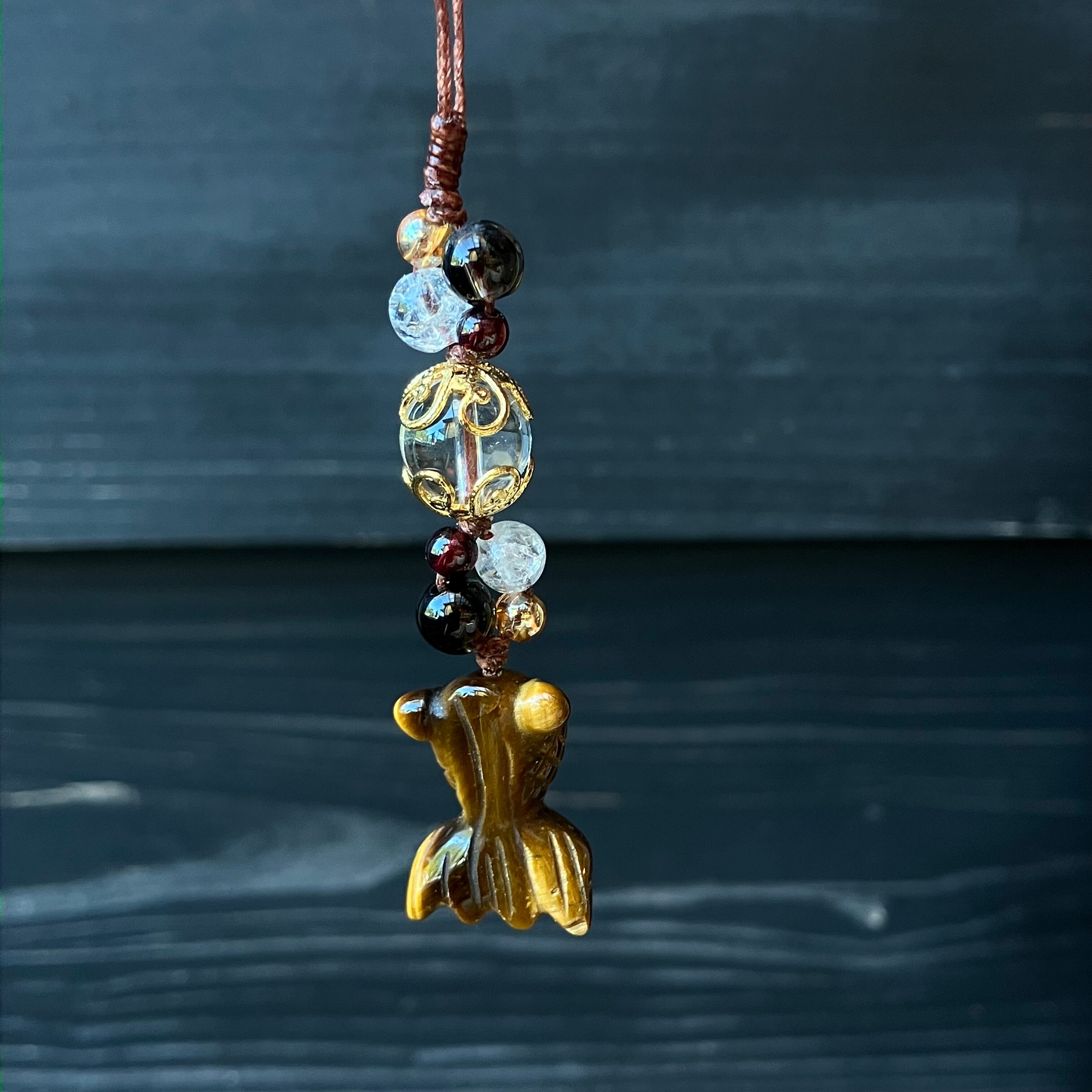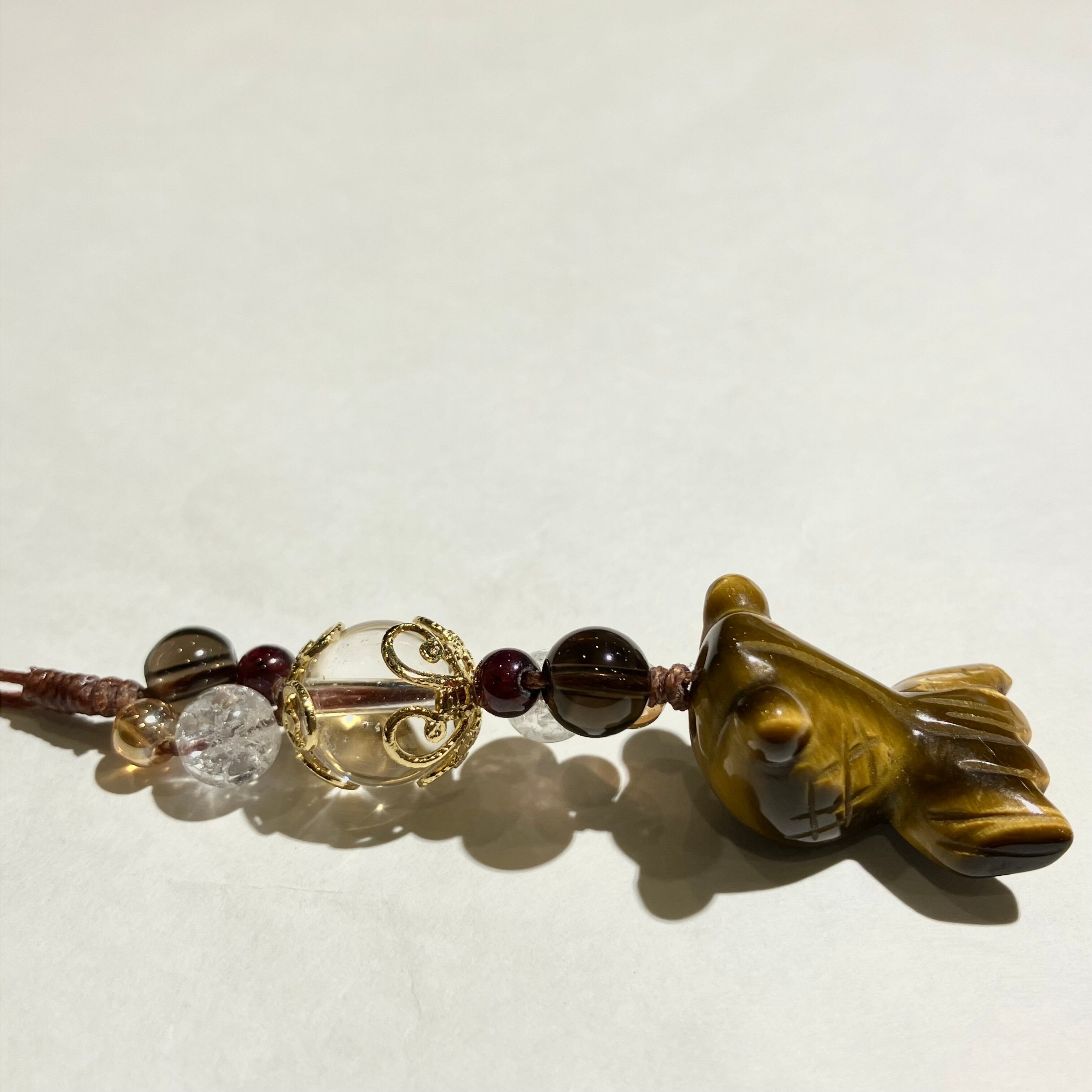 【h673d】天然石金魚ストラップ タイガーアイ[金運、洞察力、集中力]