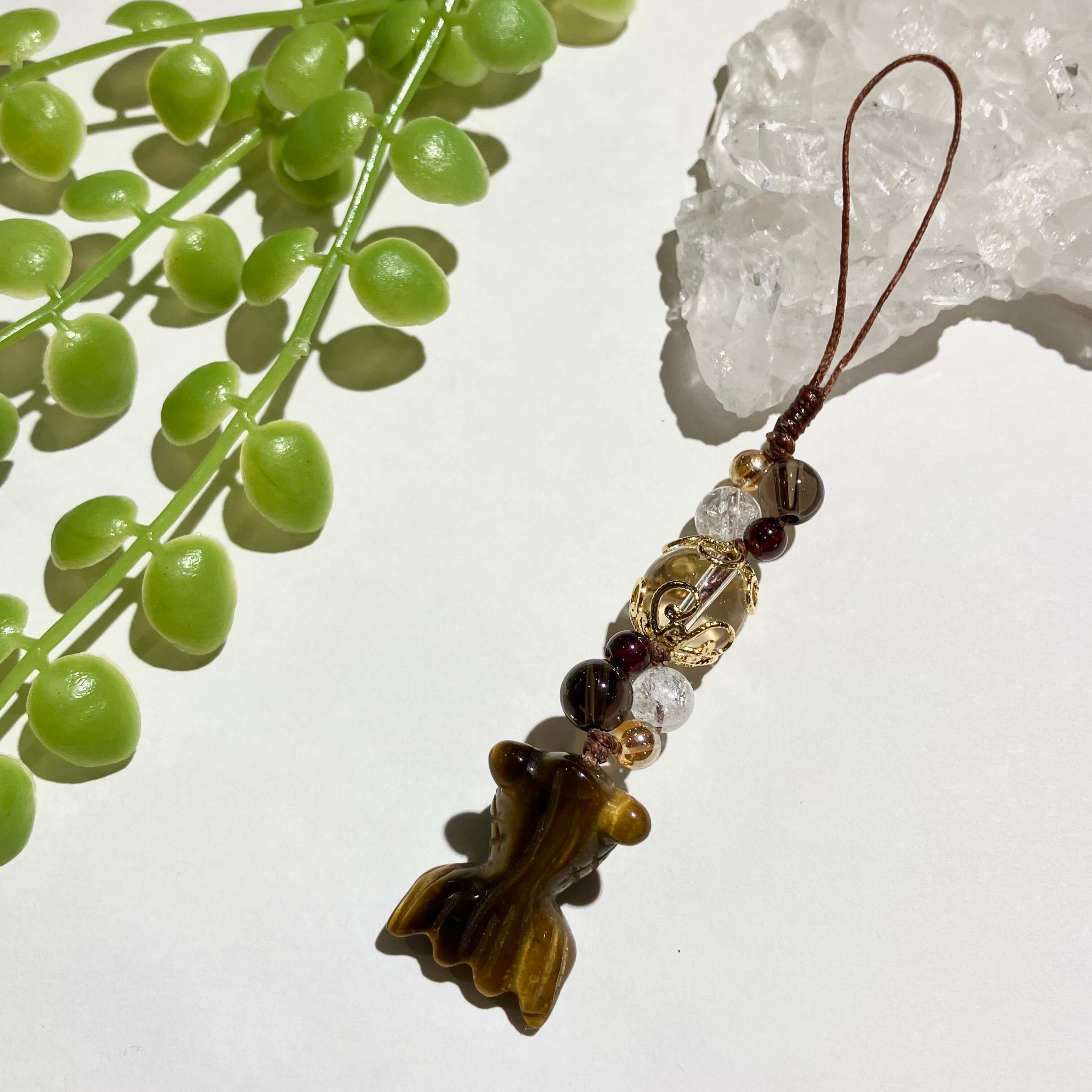 ■使用している石 タイガーアイ(金魚)、スモーキークォーツ、ガーネット、水晶、ゴールデンオーラ、クラック水晶
