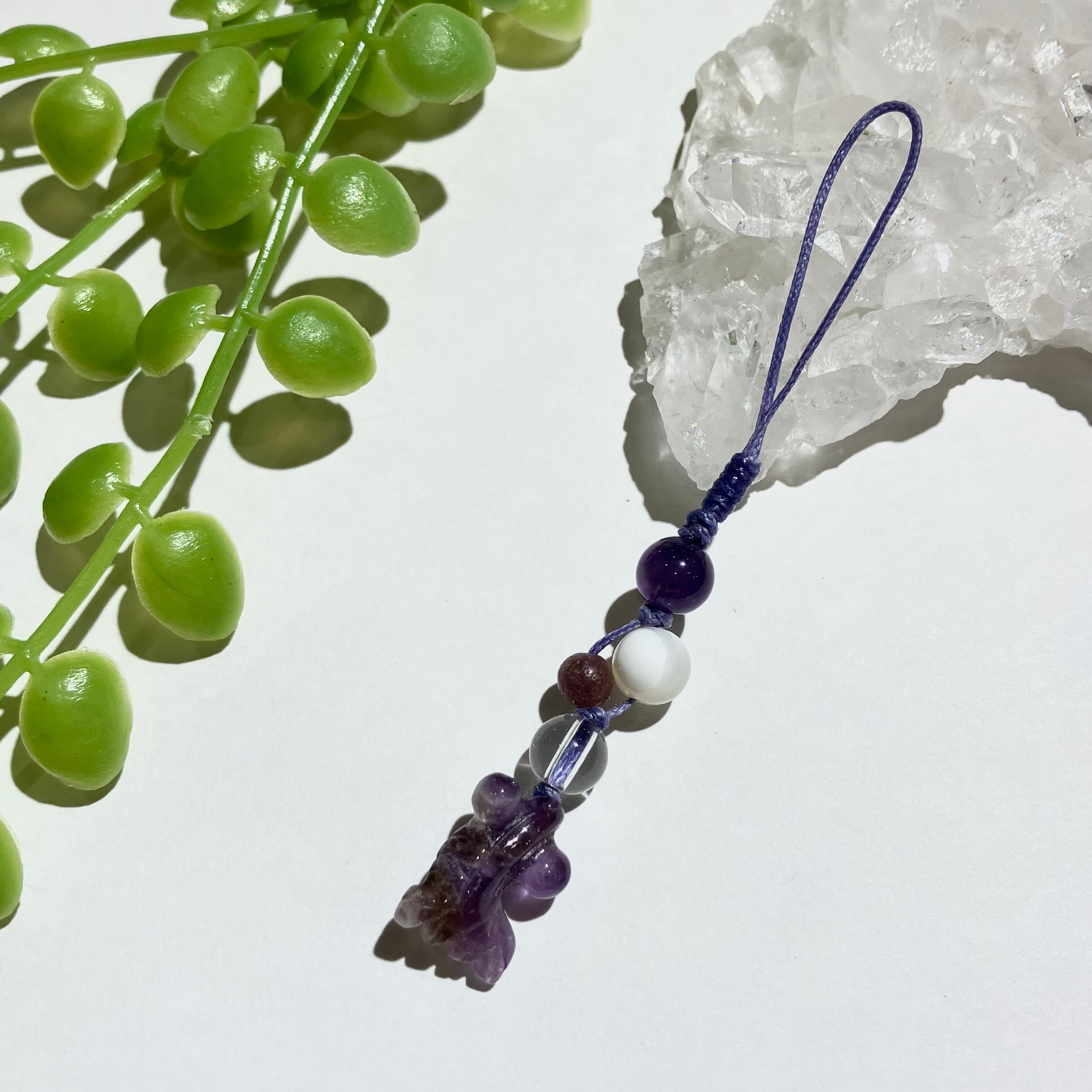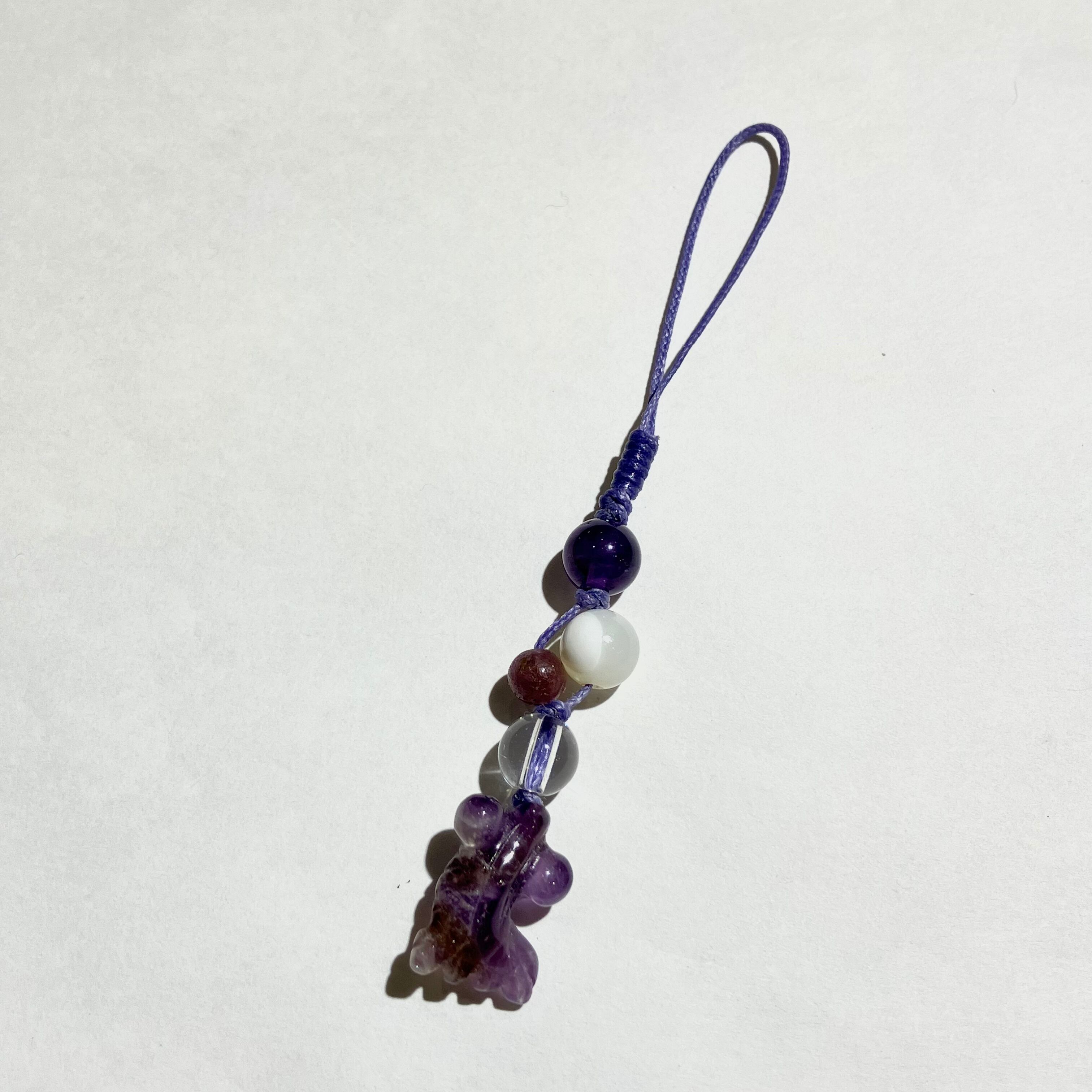 【h677d】天然石ミニ金魚ストラップ アメジスト[厄除け・愛情・絆]